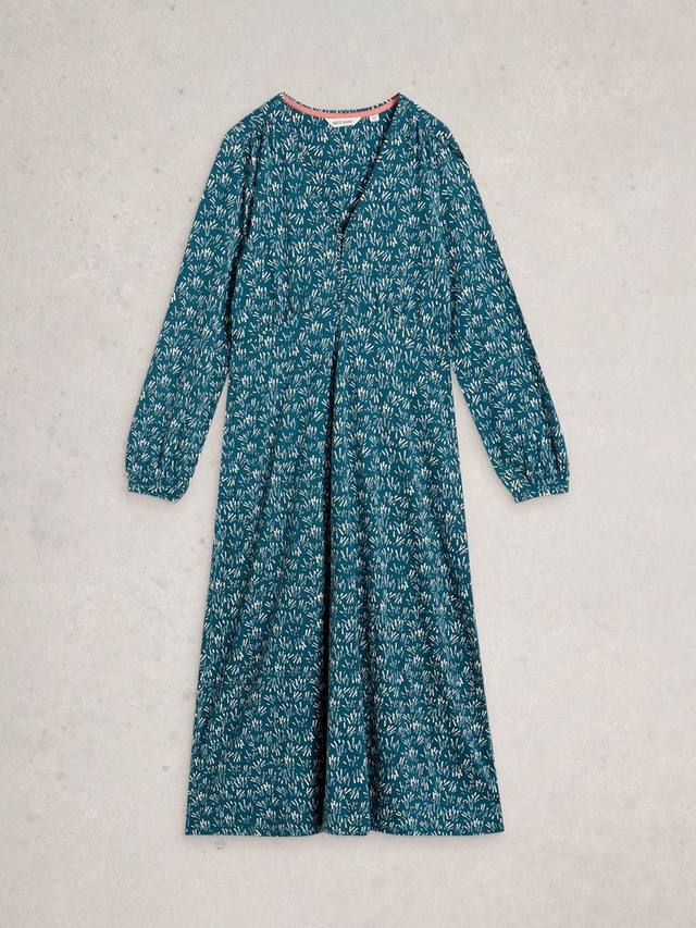 Это платье миди готово к вашим планам, сочетая мягкость и воздушный комфорт с короткими рукавами и свободным А-образным кроем. V-образный вырез и абстрактный рисунок добавят энергии, создавая непринужденную атмосферу, куда бы вы ни отправились.