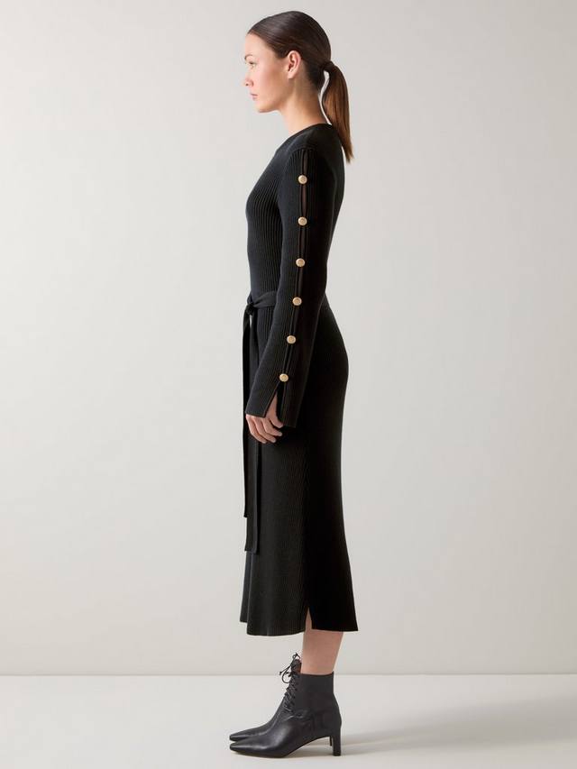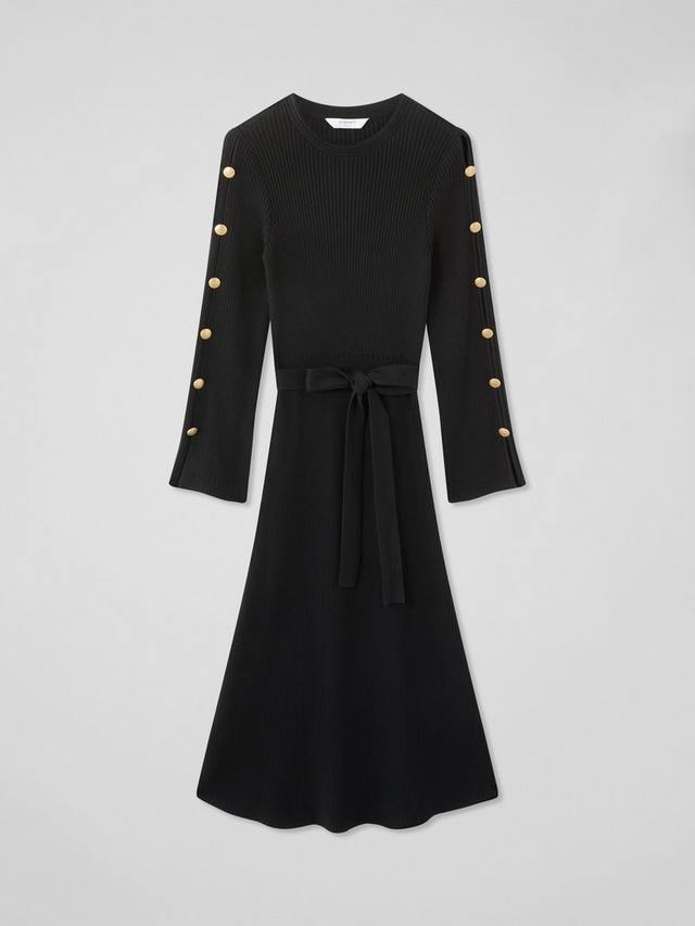 Платье Mirren воплощает непринужденную элегантность благодаря изысканному трикотажному силуэту. Это длинное платье-свитер миди из хлопкового трикотажа с рукавами три четверти и декоративными пуговицами на плечах. Круглый вырез горловины и пояс, обтянутый тканью, создают четкий силуэт, который легко перейдет как с дневного, так и с вечернего платья. Сочетайте это элегантное повседневное платье с ботильонами и эффектными серьгами на работе или с босоножками на каблуке для ужина.