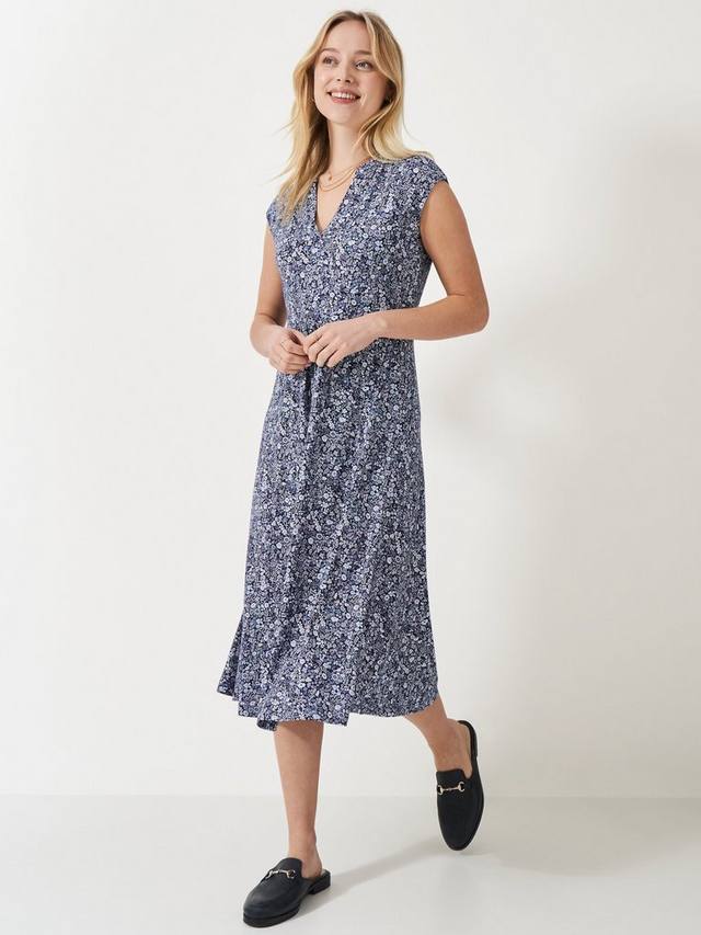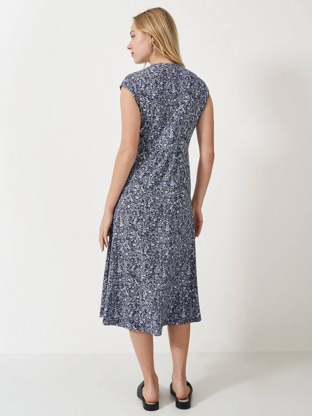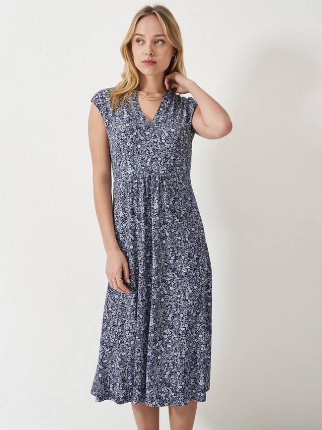 Эта модель без рукавов с фигурным вырезом горловины делает классическое летнее платье ещё более интересным. Эта красивая модель выполнена из супермягкого вискозного трикотажа с мелким цветочным принтом Hazel. Платье имеет элегантную длину миди и слегка расклешённую юбку.