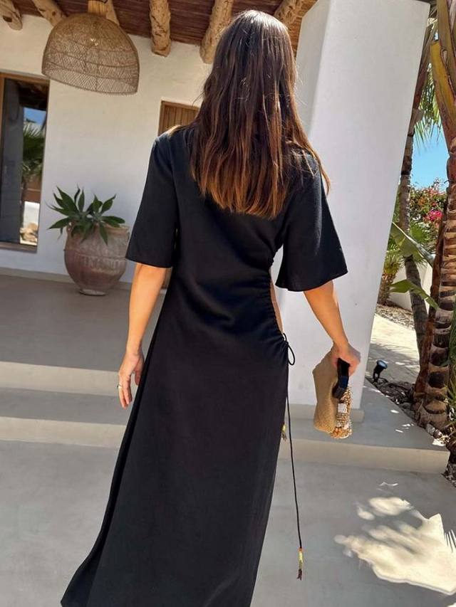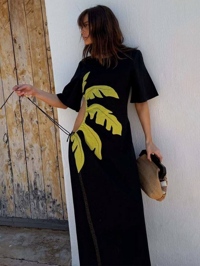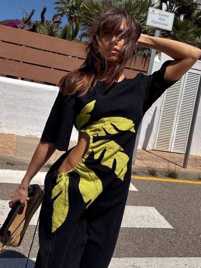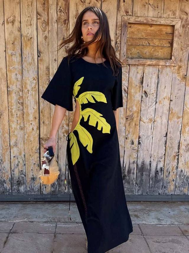 Легкое макси-платье из хлопковой смеси, подходящее как для повседневного, так и для торжественного случая. С нашим культовым пальмовым мотивом и вырезами на талии, которые можно отрегулировать по фигуре!