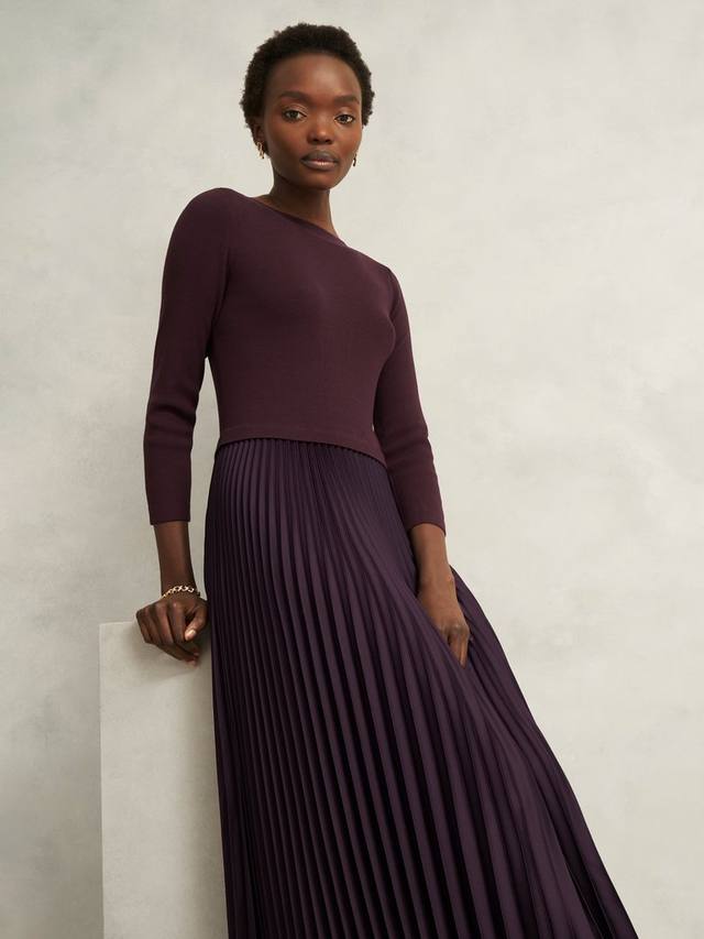 Это миниатюрное платье миди сочетает в себе привлекательный плиссированный силуэт с шикарным вырезом лодочкой и рукавами три четверти, предлагая стиль, в котором вы будете чувствовать себя комфортно, куда бы вы ни отправились. Создано для комфорта и уверенности как днем, так и вечером.