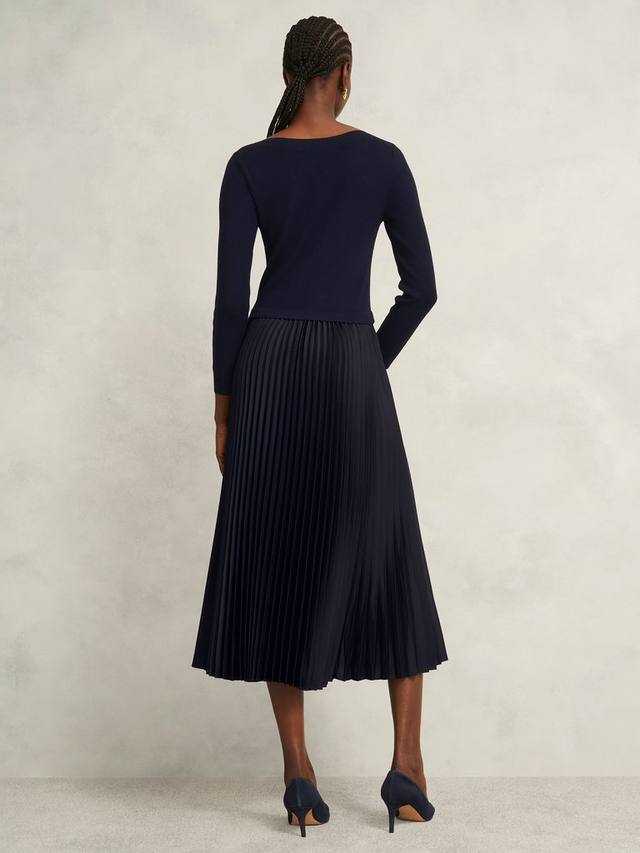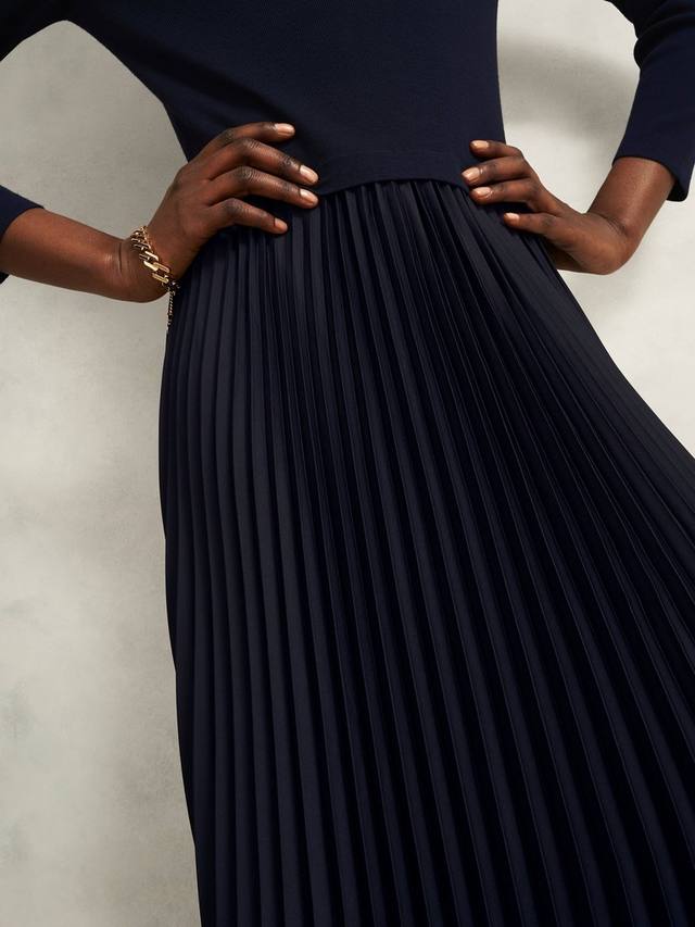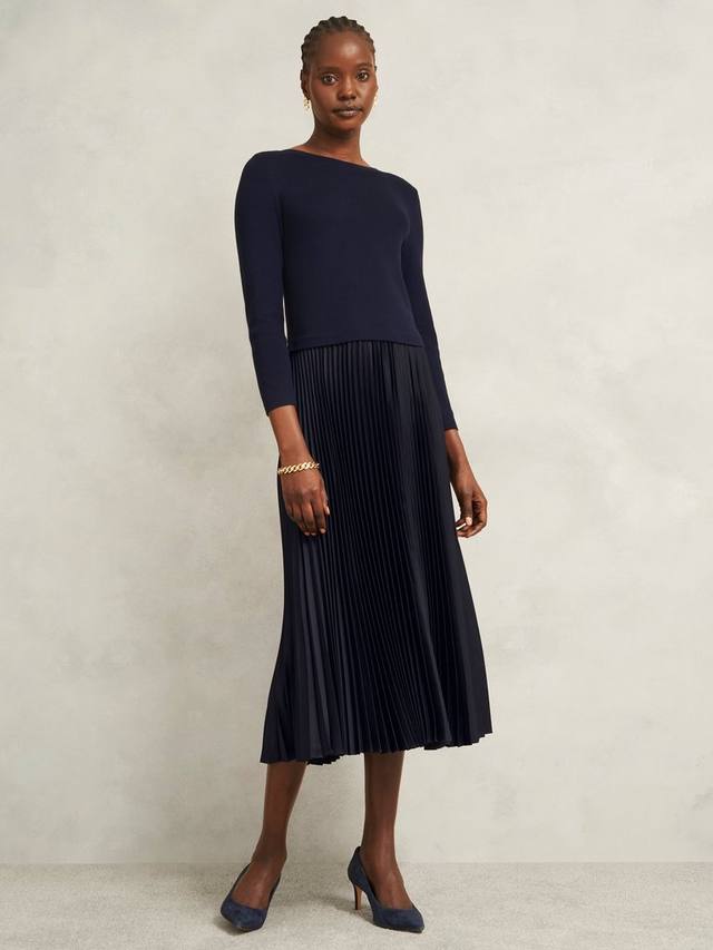 Это миниатюрное платье миди сочетает в себе привлекательный плиссированный силуэт с шикарным вырезом лодочкой и рукавами три четверти, предлагая стиль, в котором вы будете чувствовать себя комфортно, куда бы вы ни отправились. Создано для комфорта и уверенности как днем, так и вечером.