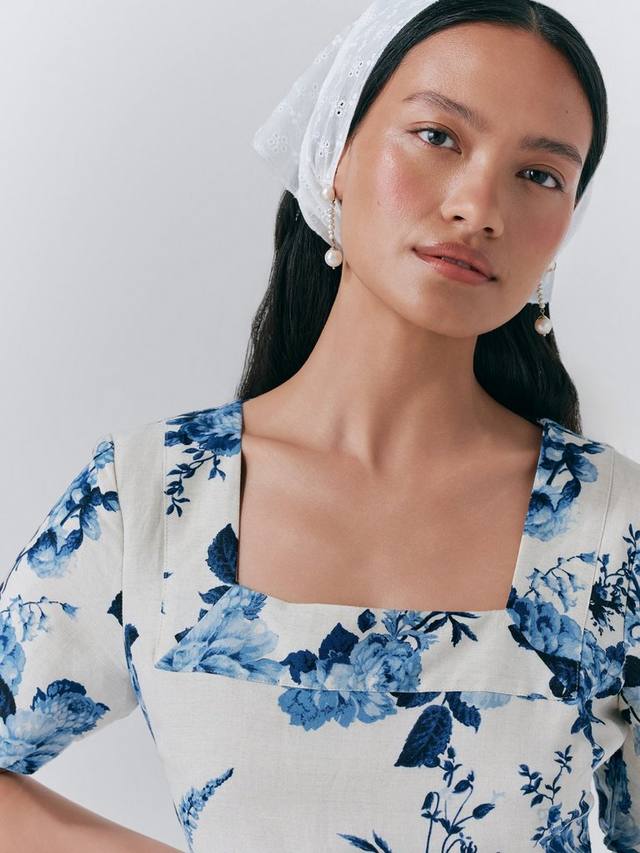 Это платье от Ghost, простого А-силуэта, длиной до бедра, сшито из чистого льна. V-образный вырез и короткие рукава напоминают о цветочных мотивах, которые мы не можем не использовать в своих коллекциях из сезона в сезон.