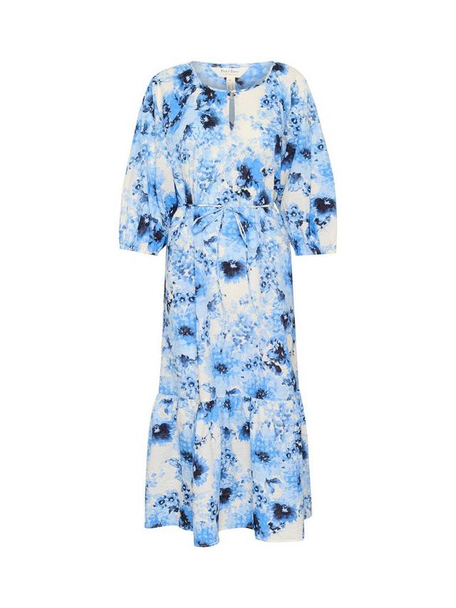 Это платье Reidun свободного кроя с женственным оборкой по подолу. Рукава три четверти и вырез-замочная скважина спереди добавляют элегантности, идеально подходящей для летних вечеринок или повседневных образов.