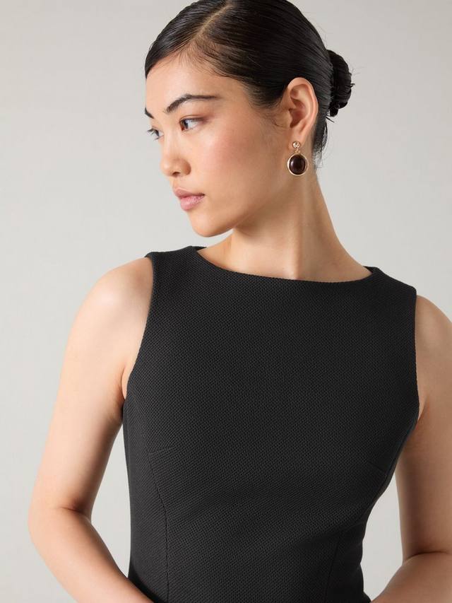 Платье Rosa – это элегантный и элегантный офисный стиль с приталенным силуэтом. Изготовлено из эластичной пике, обеспечивающей структуру и комфорт в течение всего дня. Чистый круглый вырез и отсутствие рукавов создают классический, скульптурный силуэт, который дополняет вашу фигуру благодаря длине миди. Идеально подходит для важных встреч или деловых мероприятий. Дополните его строгим блейзером и острыми каблуками для офиса или добавьте эффектные украшения, чтобы создать как повседневный, так и вечерний образ.