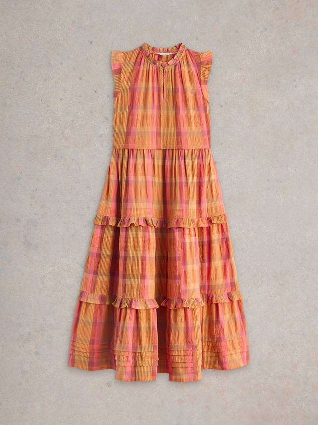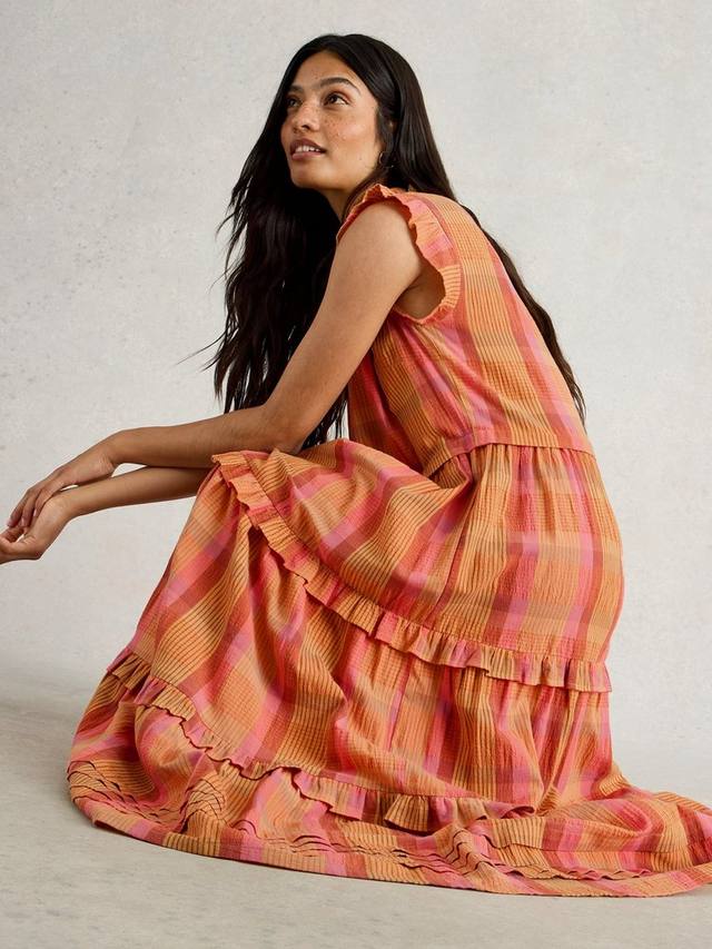 Это макси-платье от White Stuff, имеющее многоуровневый силуэт, тщательно сшито из органического хлопка. Благодаря лаконичному, но элегантному V-образному вырезу, клетчатый рисунок создаёт ощущение преппи и культовой привлекательности.