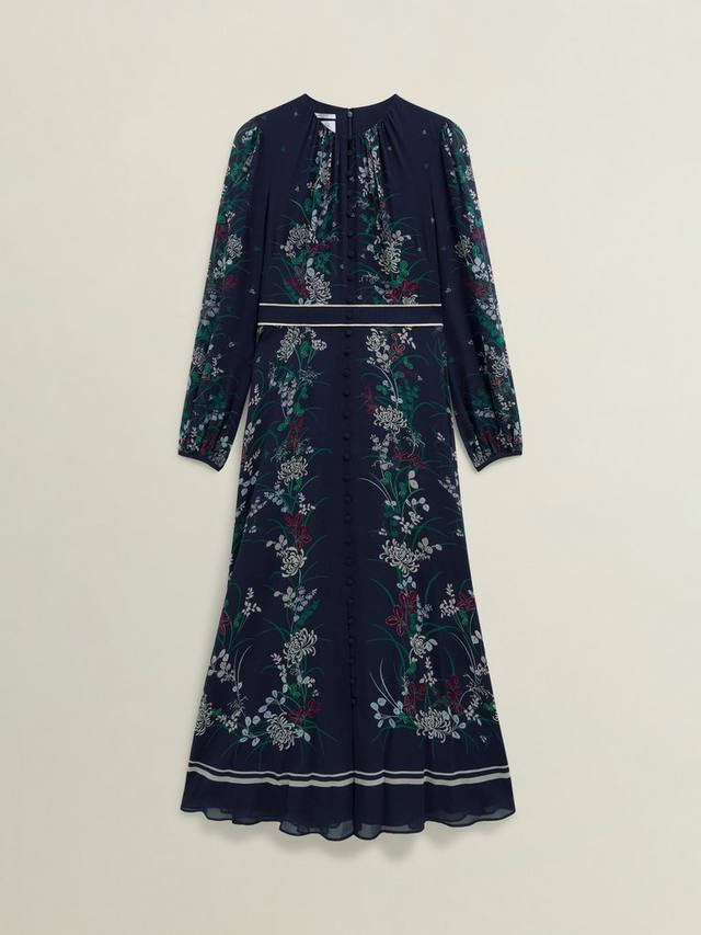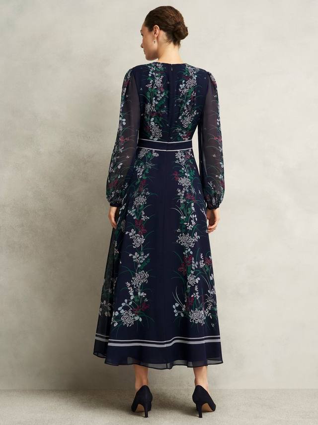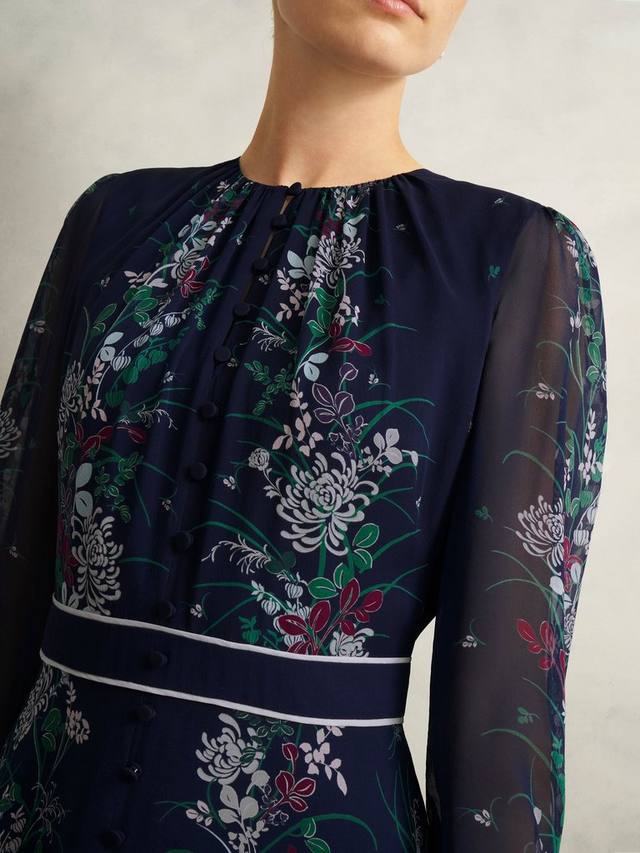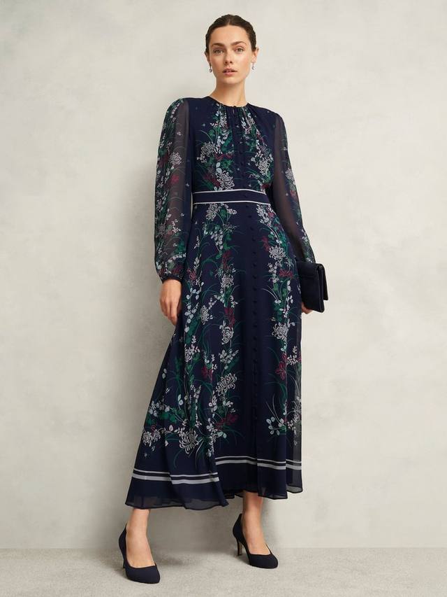 Это макси-платье от Hobbs, подчеркивающее ваш силуэт благодаря облегающему крою с расклешенной юбкой, лёгкое и роскошное благодаря шёлковой основе. Круглый вырез горловины и длинные рукава делают эту модель очаровательной благодаря классическому цветочному узору.