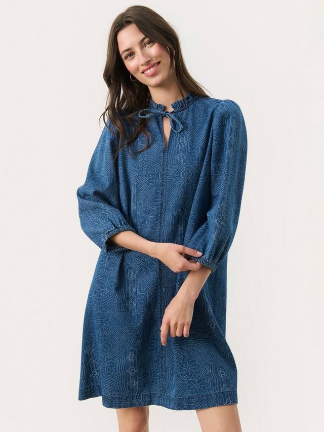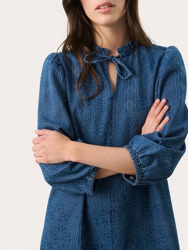 Подчеркните свой стиль платьем Tasha с принтом Джинсовый горошек, которое идеально подходит для элегантных повседневных выходов. Это мини-платье отличается классическим дизайном и исключительным комфортом.