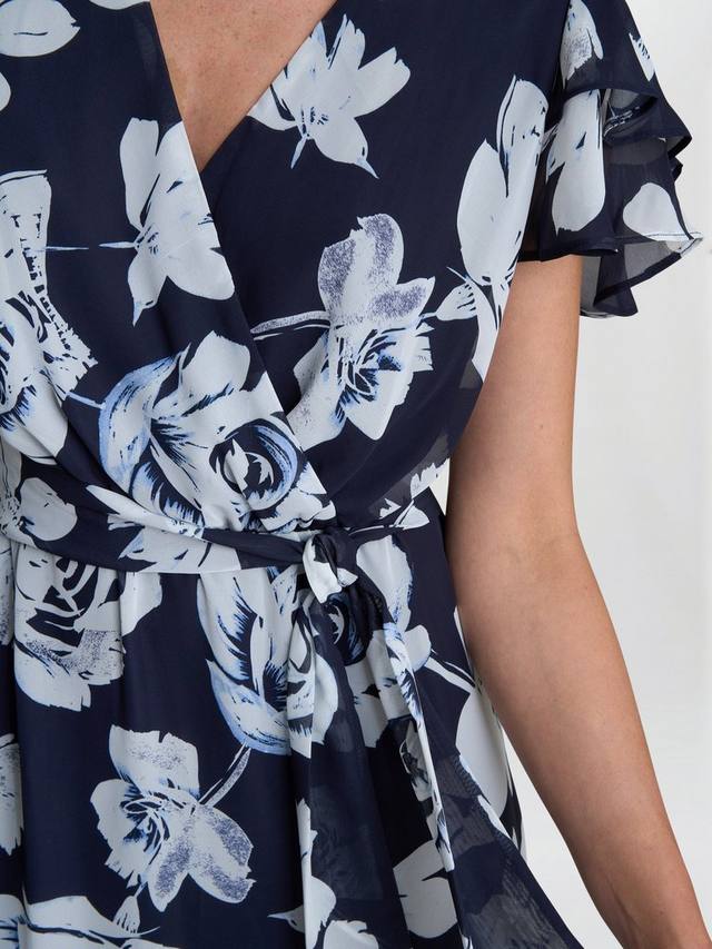 Подчеркните свою элегантность в платье Teresa — прекрасном женственном изделии, сочетающем комфорт и очарование. Это платье миди с лифом-оберткой и короткими рукавами украшено цветочным принтом. Завязывающийся пояс создает изящный силуэт, а легкий шифон струится изящно.