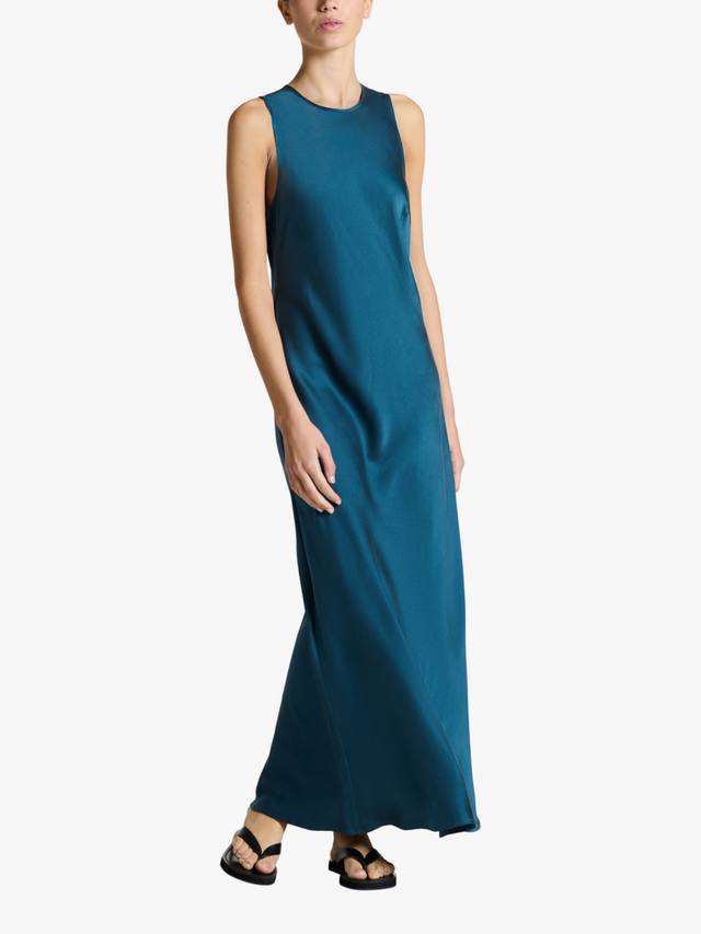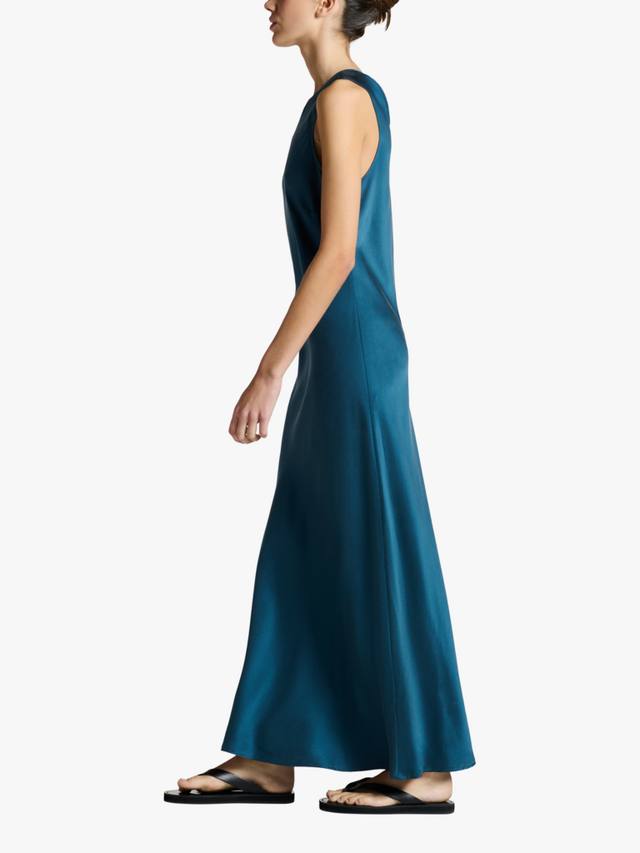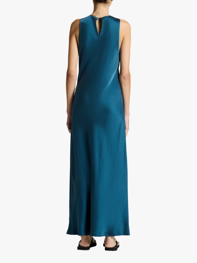 Вневременный силуэт косого кроя с высоким воротом и макси-длинной, выполненный из шелкового шармеза. Идеальное базовое платье, которое можно носить как многослойный городской образ в межсезонье, так и в отпуске.