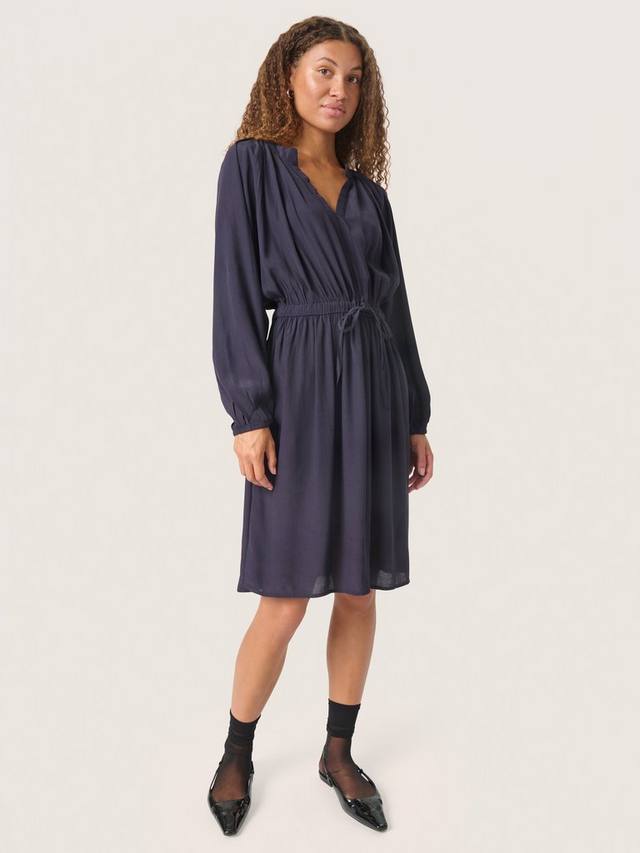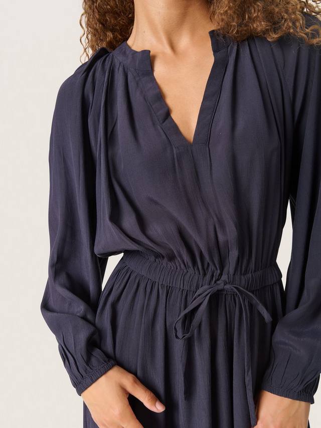 Платье Valize — женственный и элегантный фасон, который подойдет для любого случая. V-образный вырез, классический крой и эластичная резинка на талии. Длинные рукава реглан, свободный крой и эластичные края рукавов. Платье имеет крой до колен и расклешенную юбку.