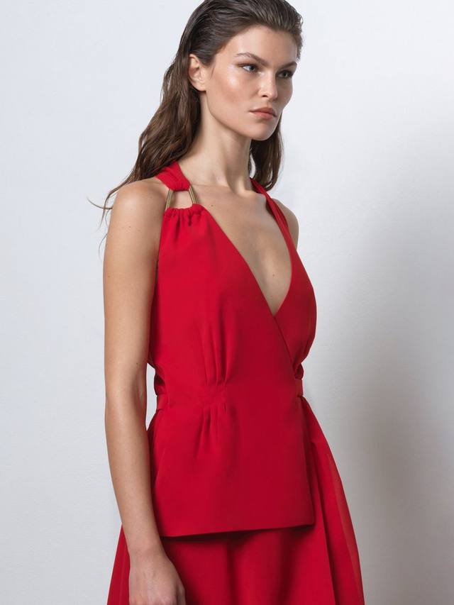 Добавьте многослойности вашему образу с платьем Vinnie Eden Tailored. Это эффектное красное платье отличается современным кроем и деталями. Асимметричный многослойный лиф дополняется золотистым кольцом на плече.