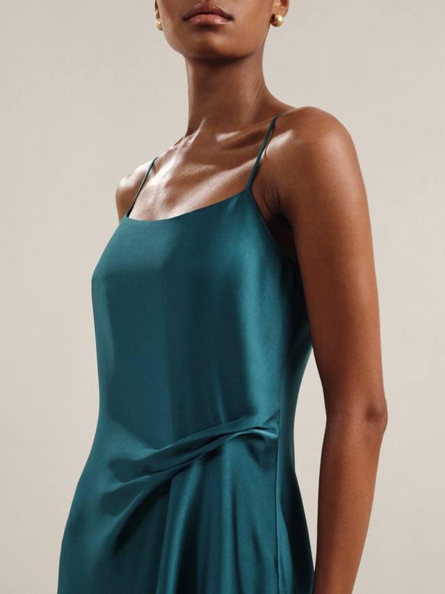 Это платье средней длины от Reiss, выполненное из мягкого атласа с добавлением вискозы, выполнено в классическом комбинационном силуэте с драпировкой сбоку. Благодаря смелому квадратному вырезу и регулируемым бретелям, этот фасон отличается минимализмом, что делает его поистине сезонным.