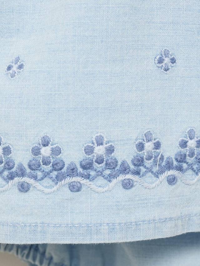 Это платье без рукавов, облегающее и расклешенное, от Mango, украшено красивой вышивкой и изготовлено из мягкого и прочного хлопка.