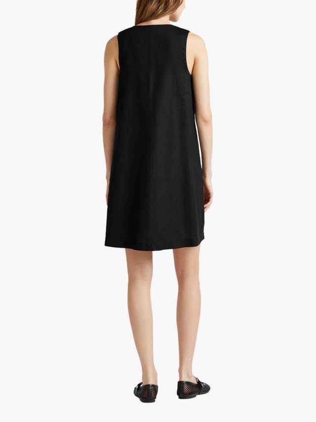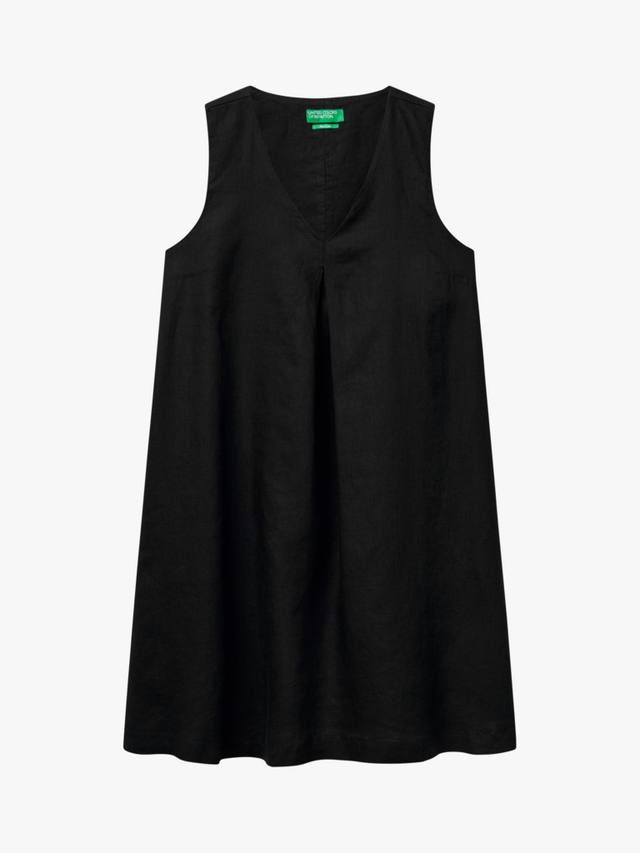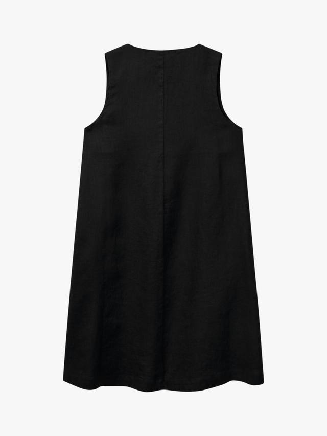 Это короткое льняное платье А-силуэта с V-образным вырезом и боковой молнией выглядит элегантно и комфортно. Идеально подходит для повседневных выходов или дополнения аксессуарами.