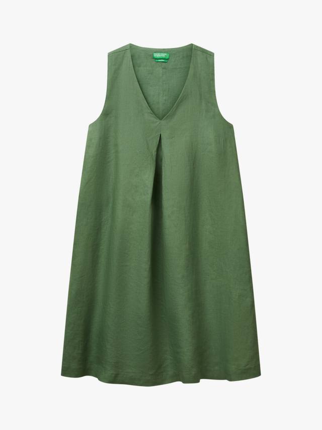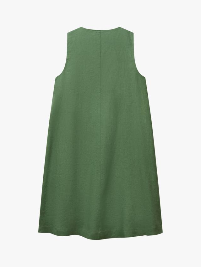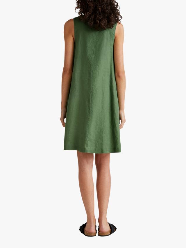 Это короткое льняное платье А-силуэта с V-образным вырезом и боковой молнией выглядит элегантно и комфортно. Идеально подходит для повседневных выходов или дополнения аксессуарами.