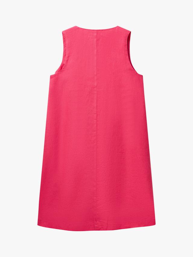 Это короткое льняное платье А-силуэта с V-образным вырезом и боковой молнией выглядит элегантно и комфортно. Идеально подходит для повседневных выходов или дополнения аксессуарами.