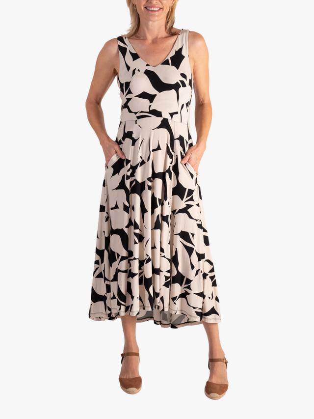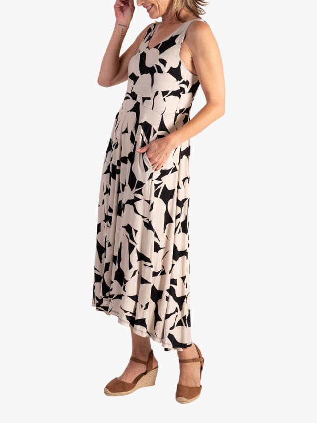 Выделитесь из толпы в этом трикотажном платье без рукавов с асимметричным подолом, выполненном в классическом расклешенном силуэте. Это трикотажное платье с интересным абстрактным принтом дополнено V-образным вырезом, эластичной сборкой сзади и двумя карманами в боковых швах. Изготовленная из струящейся трикотажной ткани для удобства ношения, эта вещь обеспечит вам такое же хорошее самочувствие, как и внешний вид в предстоящую теплую погоду.