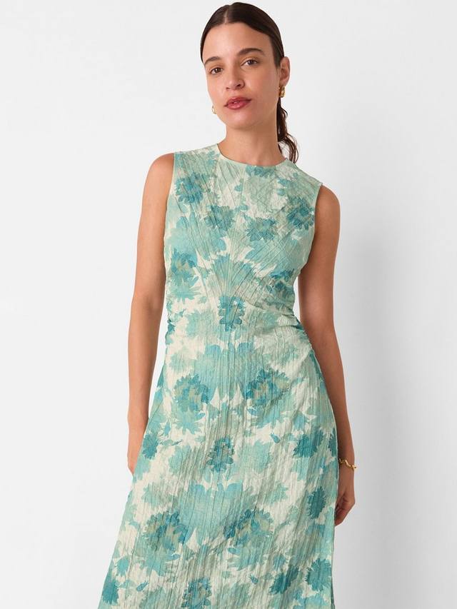 Это удобное платье А-силуэта средней длины от Whistles выполнено из мягкой хлопковой смеси. Модель без рукавов с традиционным лифом и текстурированным цветочным узором.