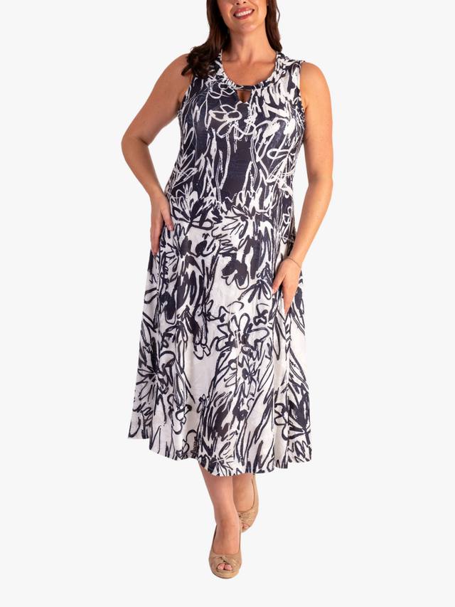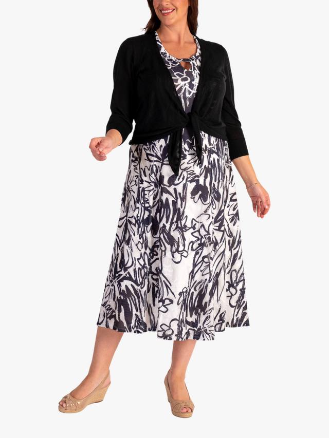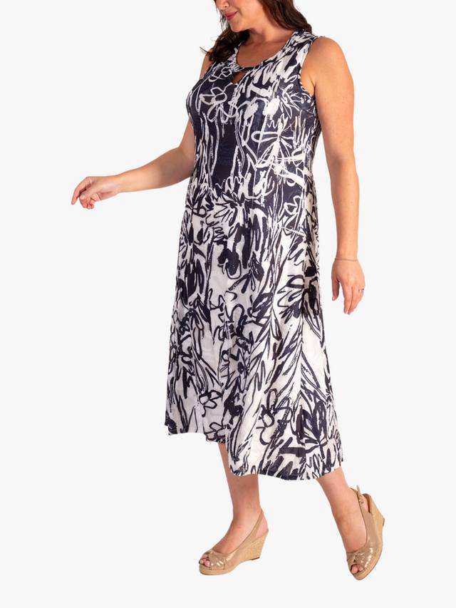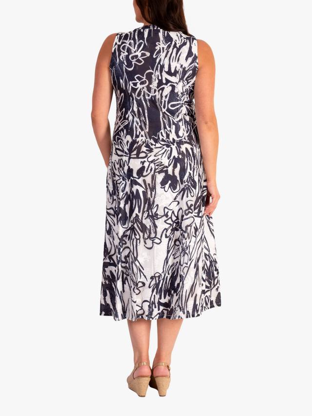 Это платье миди, подчеркивающее фигуру, с расширяющимся к низу подолом, создающим женственный силуэт, и привлекательным цветочным принтом в виде выжженных полосок, которое подойдет как для теплых летних дней, так и для шикарных летних ночей.