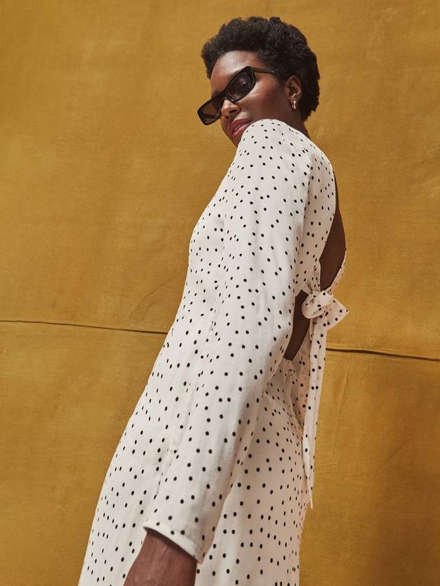 Это длинное чайное платье с непринужденным стилем поможет вам от напряженного утра до вечерних планов. Игривый горошек сочетается с мягким, струящимся макси-силуэтом, а длинные рукава, круглая горловина и завязка на спине обеспечат вам настоящий комфорт на весь день.