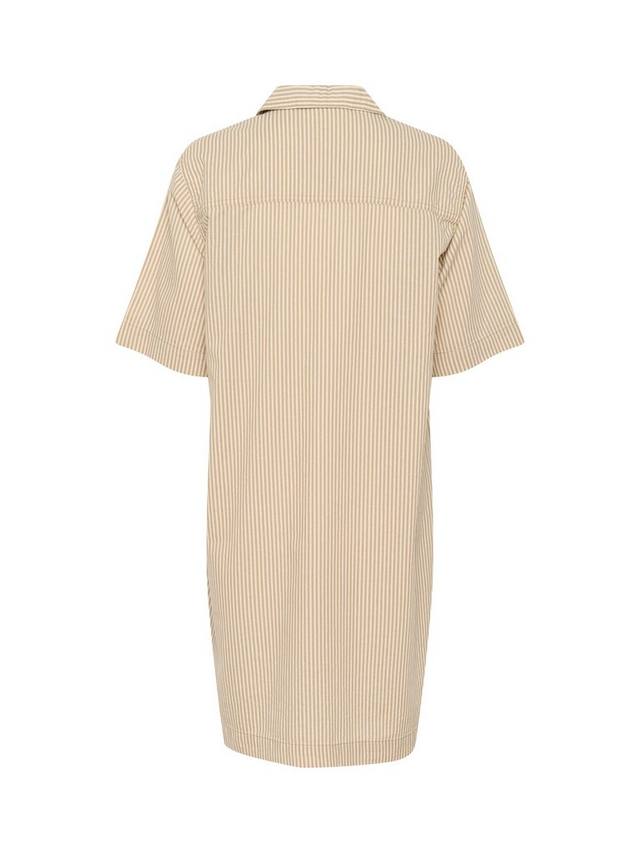 Платье naya – это стильный и непринужденный фасон с узкими полосками и интересными деталями. У него V-образный вырез, отложной воротник и нагрудные карманы с клапанами. Платье свободного кроя, длиной выше колен, рукава полудлинные, с широким кроем.