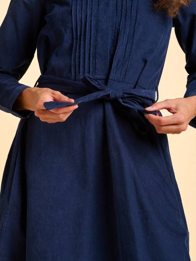 Это платье из теплого вельвета из 100% хлопка станет незаменимым предметом гардероба зимой – и днем, и вечером. Длинные рукава, завязка на талии, плиссированные вставки и удобные карманы – идеальный вариант для переходного периода. Просто добавьте колготки и ботинки, и вы сможете пережить холодные месяцы.