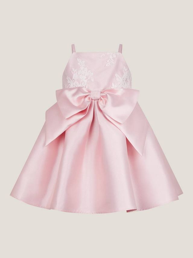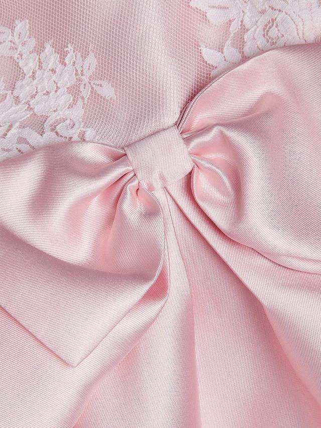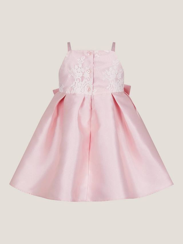 Это платье станет великолепным выбором для особых случаев: лиф с кружевом на бретелях, пышная юбка принцесса и большой бант на талии. Застёжка на пуговицы сзади.