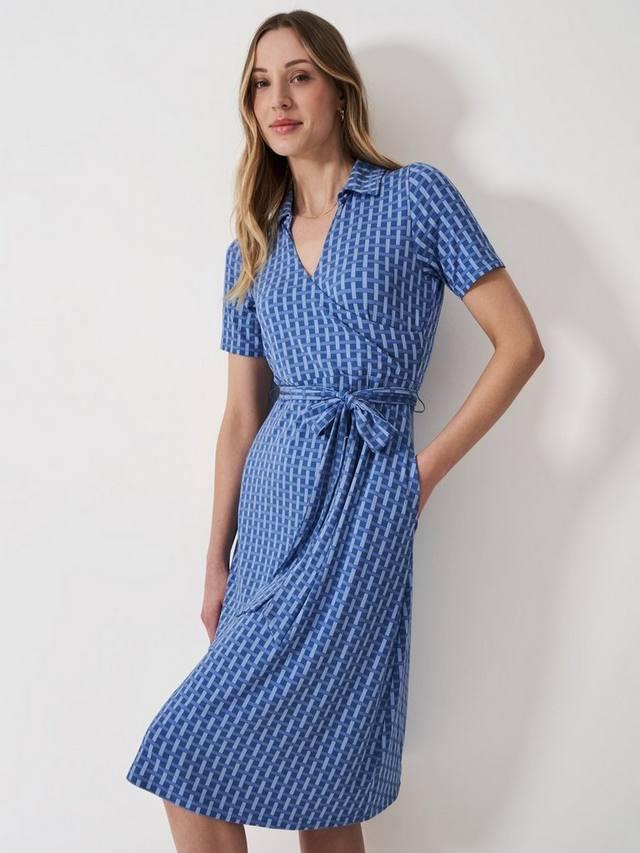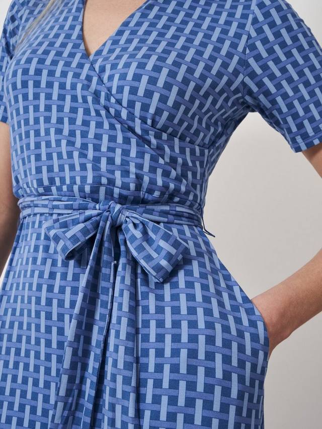 Трикотажное платье Dani в синюю клетку из комфортной и дышащей вискозы. Благодаря эффекту запаха спереди, завязывающемуся поясу и классическому клетчатому узору, это невероятно стильное платье воплощает все, что нужно для элегантного повседневного образа. Рукава доходят до локтя, обеспечивая дополнительную защиту от непогоды.