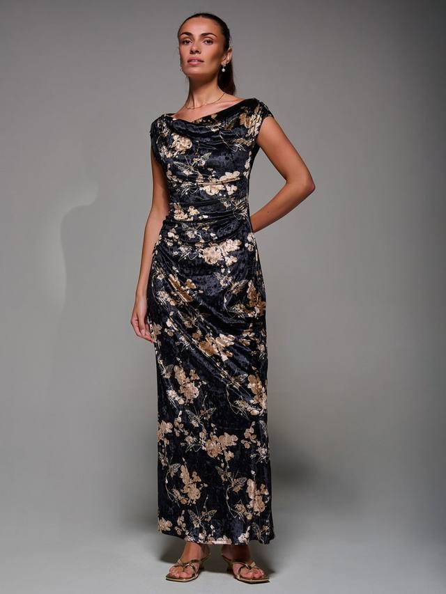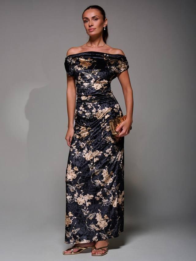 Платье без рукавов Draped Velvet Dress от Jolie Moi отличается открытыми плечами и круглым рюшевым вырезом. Изготовленное из роскошного бархата с принтом, оно предлагает привлекательный макси-силуэт и полностью на подкладке для комфорта. Драпированные детали добавляют элегантности, что делает его идеальным выбором для вечерних мероприятий.