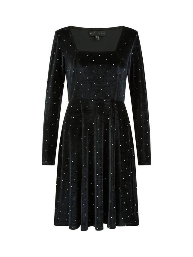 Этот простой фасон выполнен из бархата с отделкой из страз по всей длине. Блесните на вечеринке! Длинные рукава и укороченный подол создают элегантный образ. Ткань эластична для комфортной посадки.