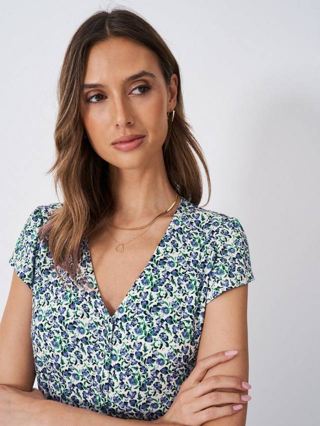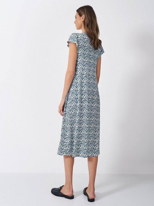 Трикотажное платье Alyssia с нашим очаровательным цветочным принтом. Изящный V-образный вырез, развевающиеся рукава, застёжка на пуговицы и сборка на талии. Свободный, непринуждённый фасон отлично сочетается с элегантными белыми кроссовками и классической джинсовой курткой в стиле вестерн.