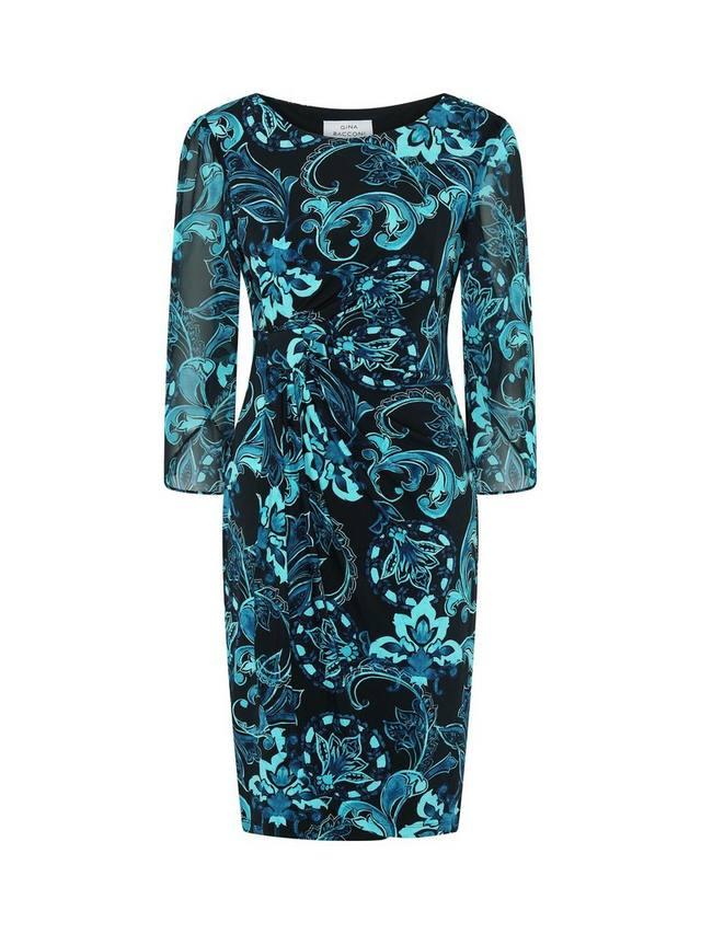 Это платье с круглым вырезом и рукавами три четверти выполнено из мягкого эластичного трикотажного полотна, обеспечивающего комфорт в течение всего дня. Платье дополнено сборкой на талии, создающей привлекательный силуэт, и свежим растительным принтом.