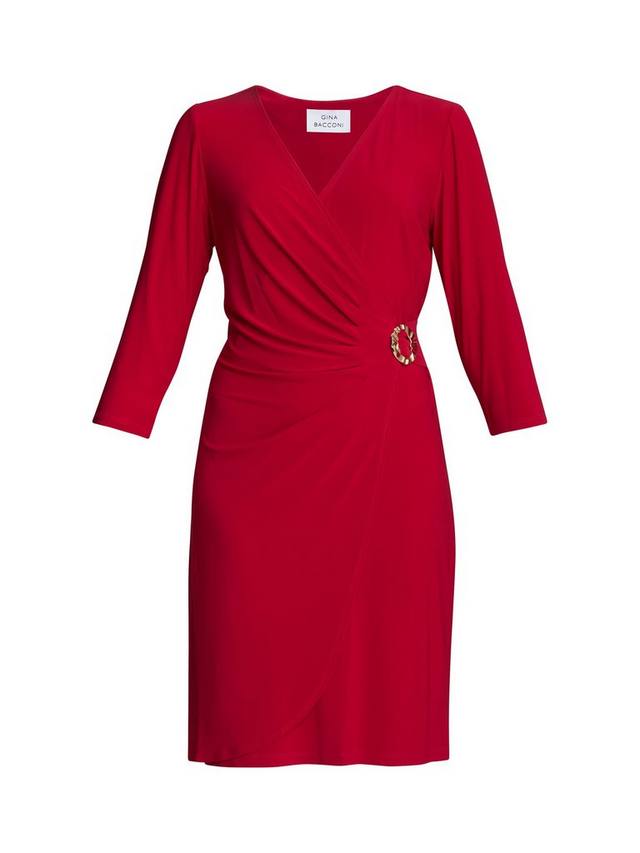Создайте смелый и элегантный образ в платье Tilda. Это изысканное платье длиной до колена с V-образным вырезом и рукавами 3/4 выполнено из мягкого трикотажного полотна, которое красиво драпируется по фигуре. Присборенная талия дополнена декоративной пряжкой, которая подчеркивает силуэт и добавляет нотку гламура.