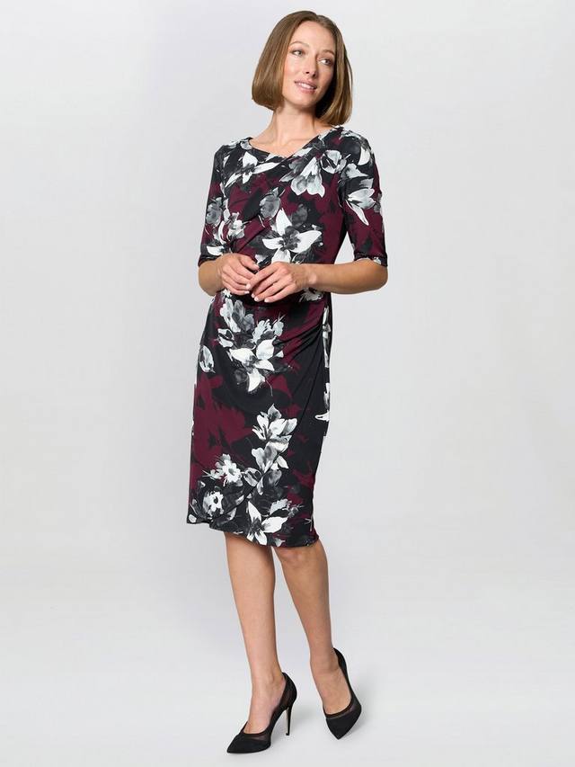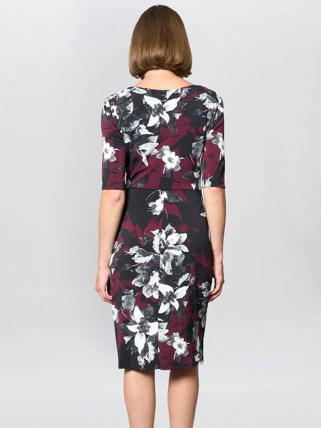 Это платье из джерси с цветочным принтом, несомненно, станет выигрышным вариантом для вашего следующего мероприятия. Цветочный принт, рукава 3/4 и круглый вырез горловины создают изысканный образ. Имитация запаха на талии подчеркивает фигуру и делает силуэт более привлекательным. Идеально подходит для свадеб, вечерних мероприятий или официальных ужинов.