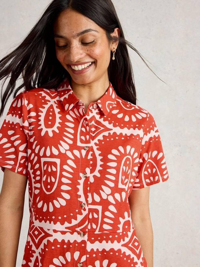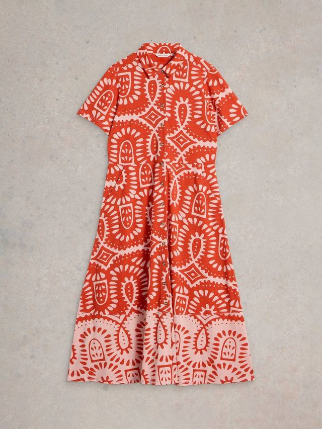 Это платье миди с застежкой на пуговицы и воротником от White Stuff с ярким, выразительным узором — гарантированный способ заявить о себе этим летом.