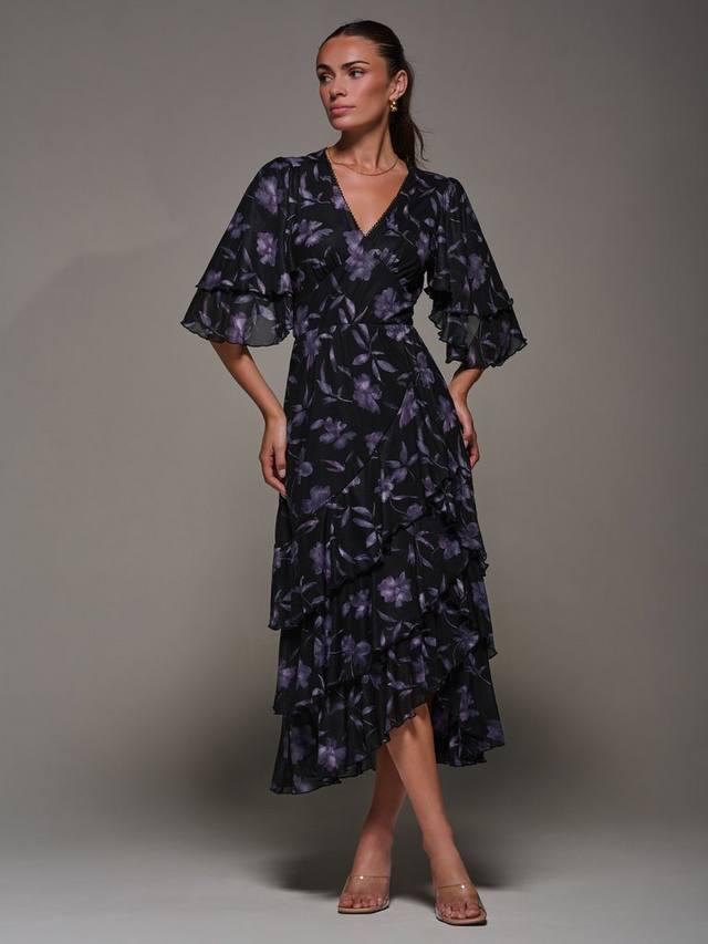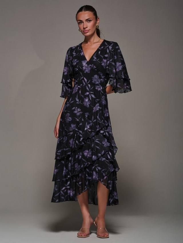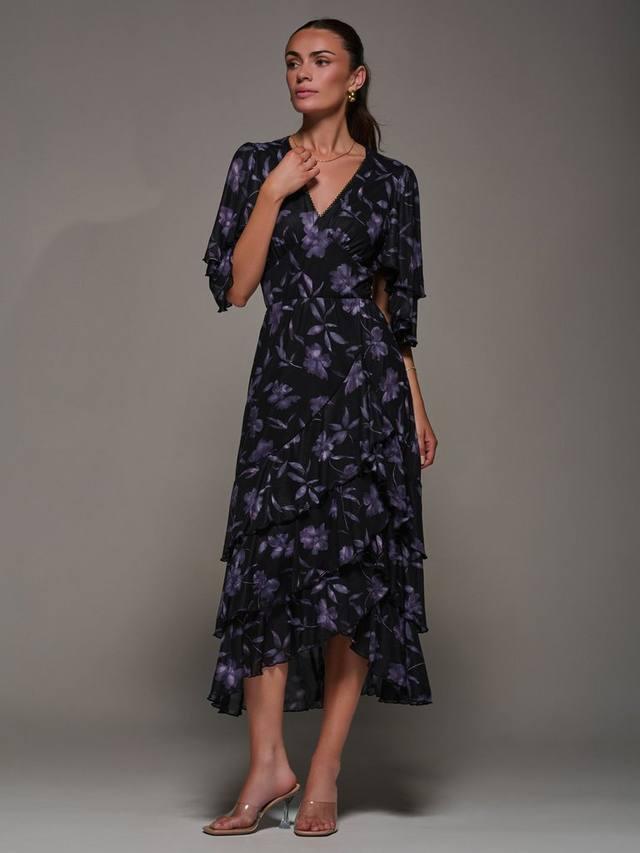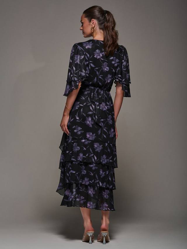 Платье-макси из сетчатой ткани с оборкой от Jolie Moi выполнено из мягкой сетчатой ткани, имеет привлекательный V-образный вырез с нежной кружевной отделкой и двухслойные короткие рукава. Присборенный бюст подчеркивает форму лифа, а тканевый пояс-завязка подчеркивает талию. Трехъярусная юбка, слегка укороченная спереди, обеспечивает грациозность движений и дополнена кружевной каймой.