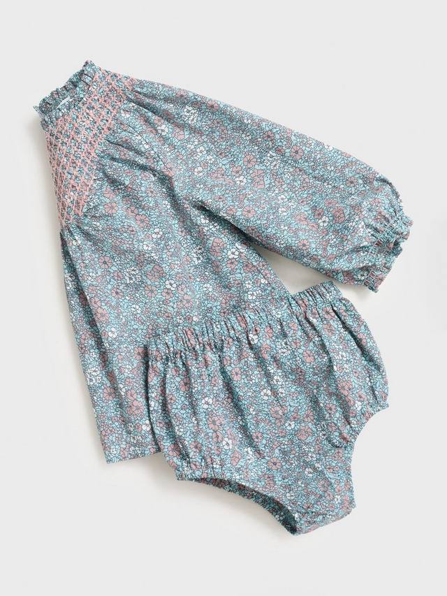 Мини-платье с цветочным принтом, облегающее и расклешенное, из мягкого хлопка. Длинные рукава и простой крой обеспечивают комфорт и готовы к играм.