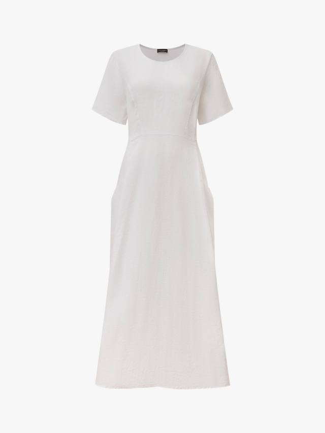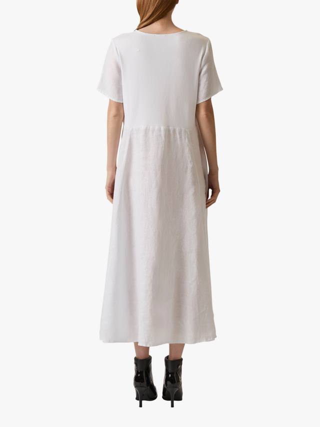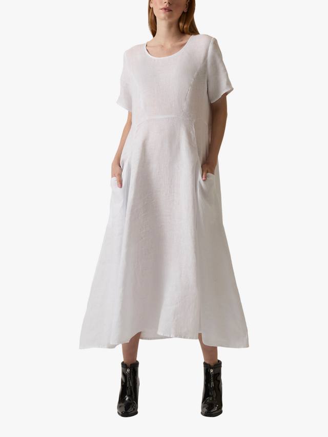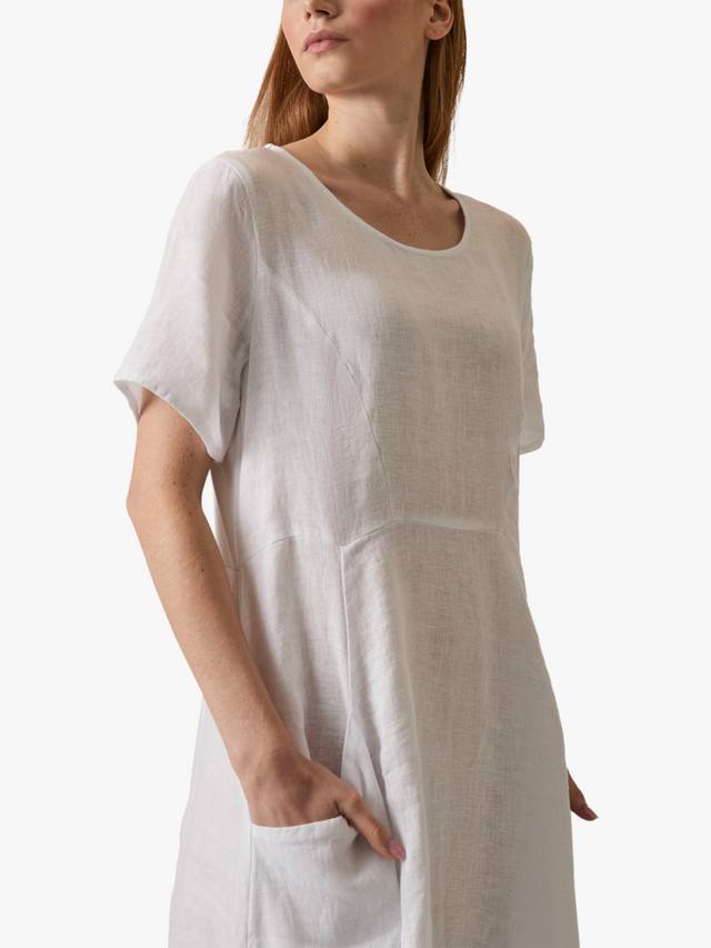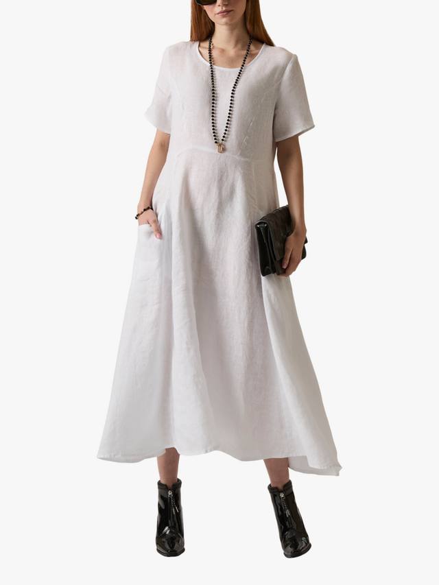 Это льняное платье с карманами от James Lakeland отличается непринужденным стилем и изысканным оттенком. Платье имеет короткие рукава и круглый вырез, а длина до щиколотки и выгодно подчеркивает фигуру А-силуэтом. Дышащий лен делает его легким и удобным, а его натуральная текстура создает легкий полупрозрачный эффект. Боковые карманы добавляют функциональности, а эластичная хлопковая вставка сзади обеспечивает удобную посадку.