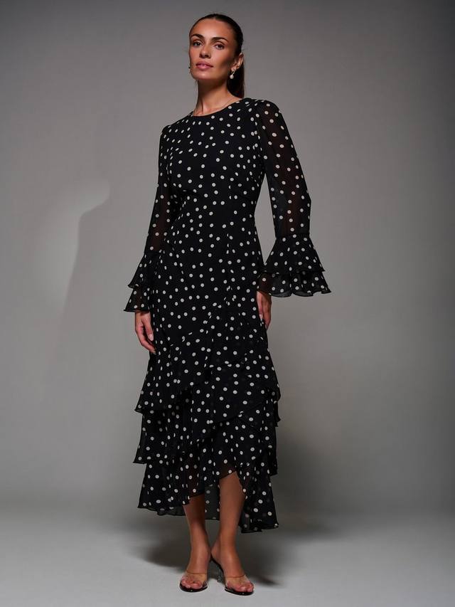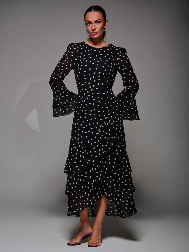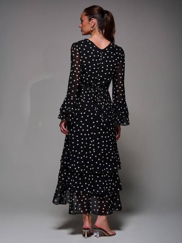 Приталенное, расклешенное и великолепное. Это длинное платье макси от Jolie Moi с простым круглым вырезом и классическим принтом в горошек.