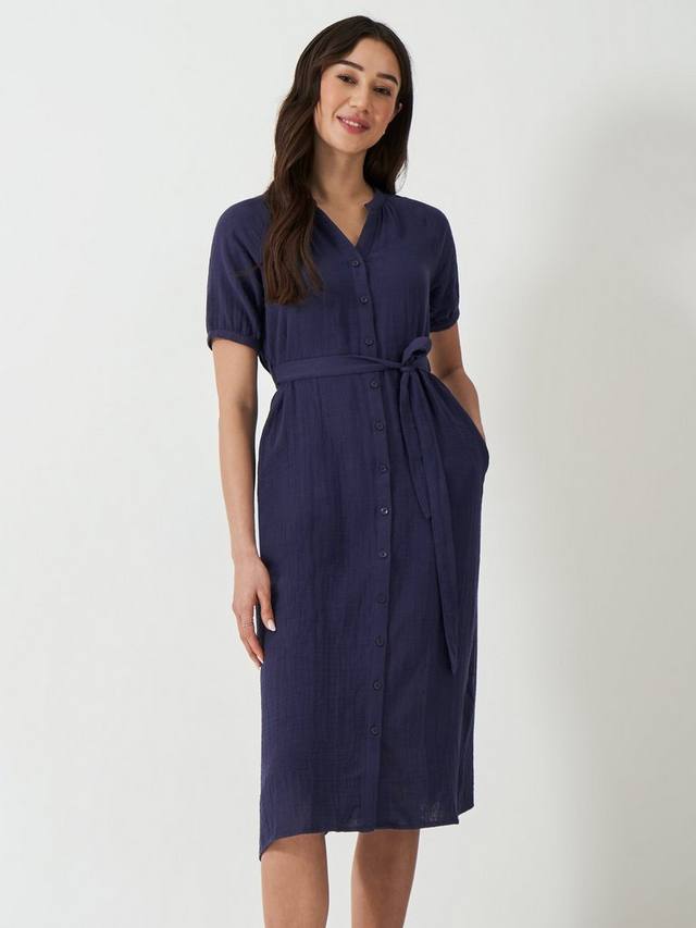 Невероятно мягкая и удобная ткань из марли, из которой изготовлено это платье, дарит ощущение свежести в летние дни и красиво драпируется, создавая самый выигрышный образ. Кроме того, платье дополнено продуманными сборками, завязывающимся поясом на талии и тональными пуговицами спереди.