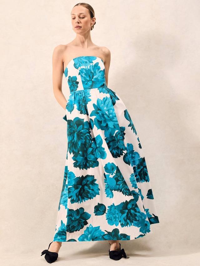 Платье Annie от Ro&Zo можно адаптировать к любому случаю: снимите тонкие бретельки, чтобы получить силуэт без рукавов, или прикрепите соответствующий бант сзади для создания более романтичного образа. Это платье макси-длины выполнено из эластичного хлопка с крупным цветочным принтом синего цвета. Платье полностью на подкладке и с карманами.
