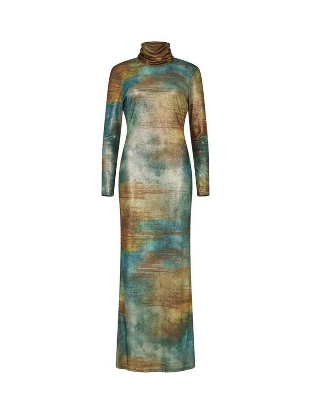 Платье DASKA макси с мраморным эффектом, металлическим блеском, облегающим кроем и высоким вырезом. Созданное для того, чтобы вы чувствовали себя уверенно и выразительно, оно следует за вами и обеспечивает комфорт на любом мероприятии.