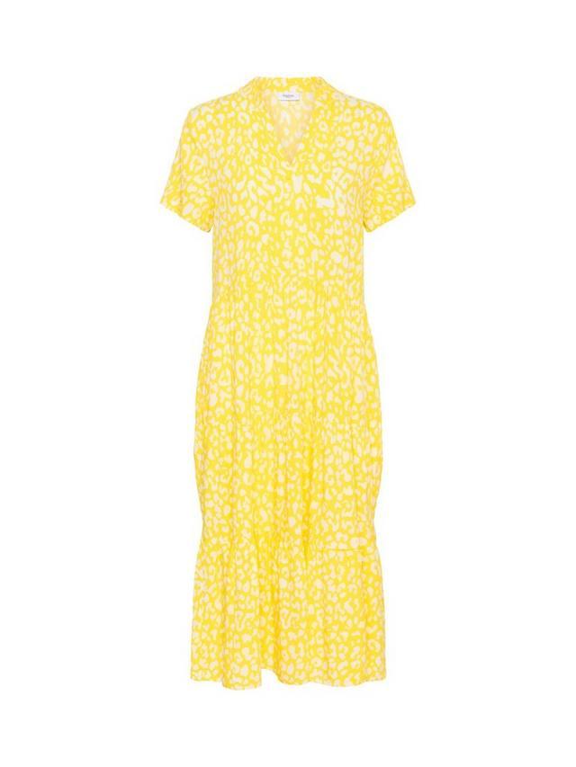 Это платье в пол свободного кроя с юбкой-халат и ярусами от Saint Tropez сшито из лёгкой ткани, которая отлично подойдёт для лета. Модель с V-образным вырезом и короткими рукавами украшена абстрактным анималистичным принтом в ярком жёлтом оттенке.