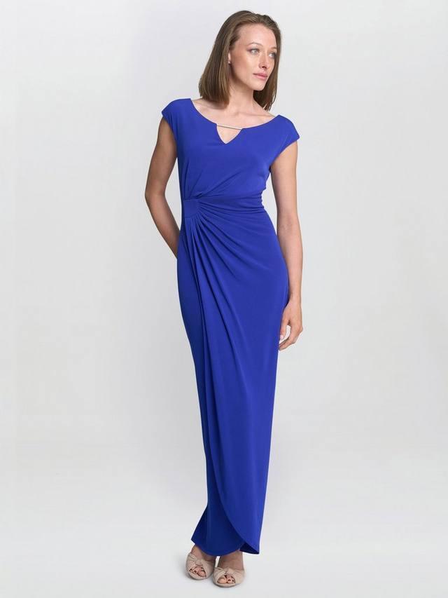 Почувствуйте себя великолепно в платье-халате Eileen, которое станет ярким акцентом на любом торжественном мероприятии. Это платье свободного кроя с короткими рукавами и круглым вырезом с V-образным вырезом, украшенным декоративными элементами. Запах подчеркивает изгибы фигуры, создавая женственный образ.