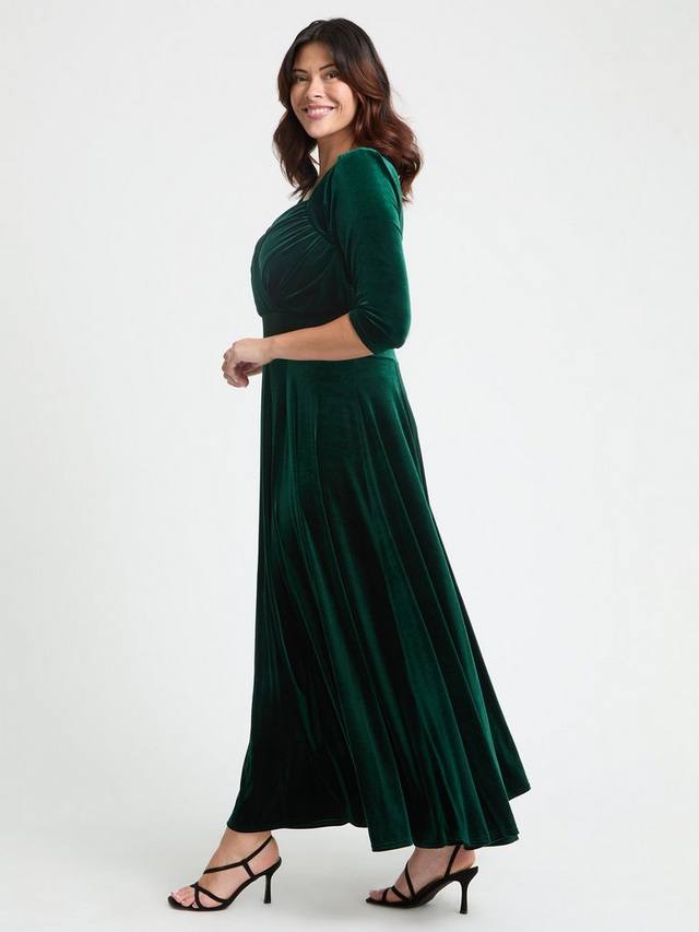 Платье макси Elizabeth Velvet с роскошным, смелым глубоким вырезом и лифом-обёрткой, украшенным супермягким эластичным бархатом POWERFIT, дополнено пышной юбкой, прикреплённой к эластичной ленте MagicBand, которая выгодно подчеркивает фигуру. Это поистине сенсационное вечернее платье с надёжным облегающим вырезом сердечком и рукавами длиной три четверти идеально подойдёт для любого случая. Обратите внимание, что подплечники съёмные и удлиняются по вашему желанию.