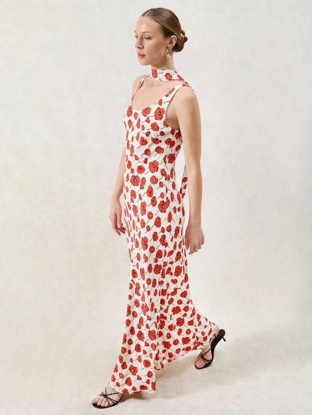Это платье в пол от Ro&Zo с облегающим кроем, подчеркивающим талию, выполнено из прочной ткани. Модель без рукавов с круглым вырезом очаровывает непринужденностью благодаря цветочному принту.