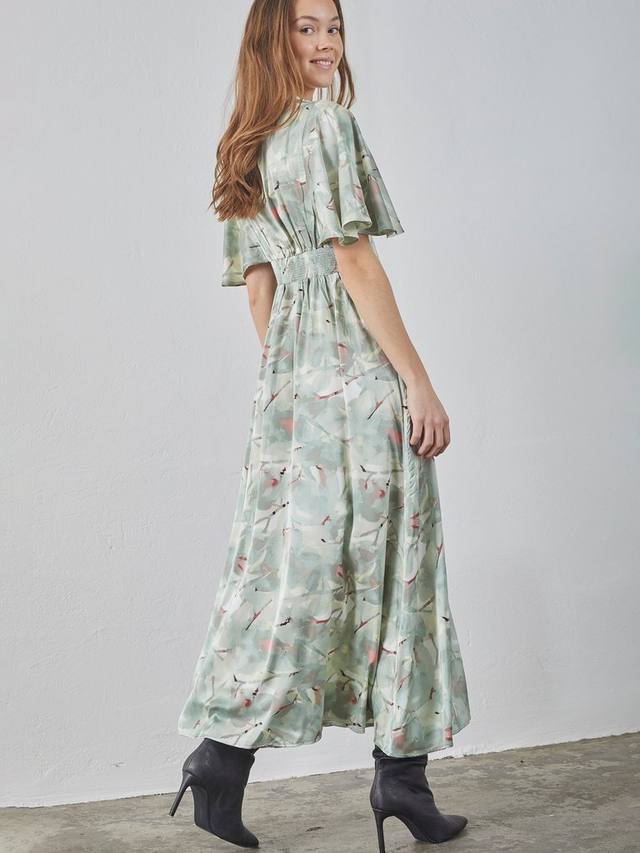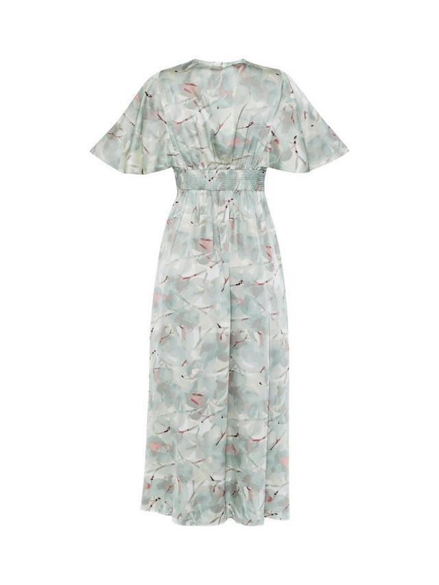 Это платье в пол от Sisters Point, мягко облегающее фигуру благодаря силуэту в стиле ампир, выполнено из лёгкой ткани. Благодаря лаконичному V-образному вырезу и коротким рукавам, оно идеально подходит к фигуре, а принт с листьями увенчан принтом.