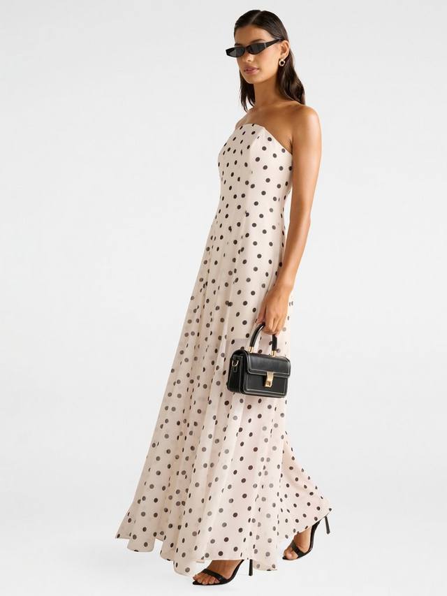 Это проверенное временем макси-платье от Forever New выполнено из прочной синтетической ткани. Благодаря привлекательному вырезу бандо, этот фасон по-новому воспроизводит оригинальный принт, украшенный горошком.