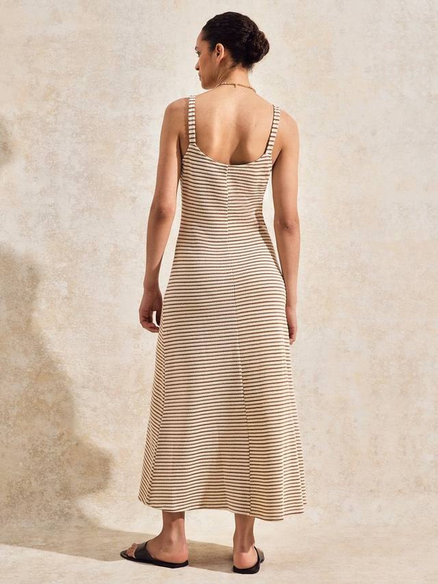 Это макси-платье от Ro&Zo простого А-силуэта выполнено из дышащей хлопковой смеси. Изящный вырез в форме сердечка и бретели подчеркивают фигуру лаконичным узором в полоску.